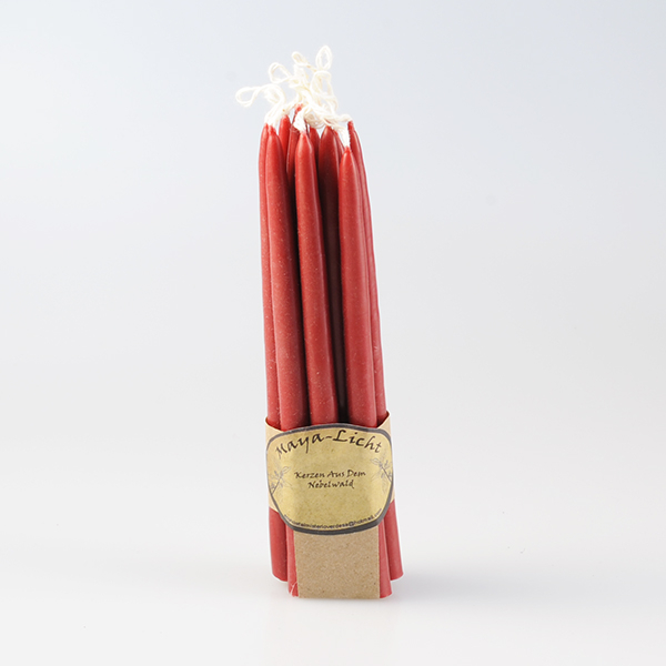 20 Kerzen, ca. 15 cm lang, handgefertigt, rot. Verpackungseinheit: 2 Pakete à 10 Stück
