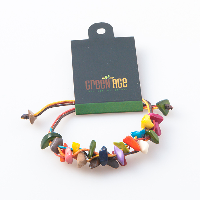 Tagua Armband mehrfarbig von Green Age, dass mit einem Ziehverschluss verstellt werden kann. Sehr reißfest.