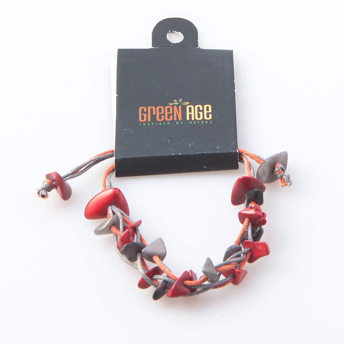 Tagua Armband rot grau von Green Age, dass mit einem Ziehverschluss verstellt werden kann. Sehr reißfest.