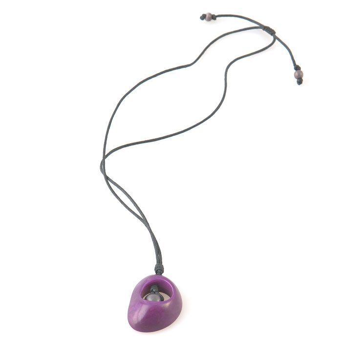 Tagua Kette grau purple von Green Age. Das gewachste Baumwollhalsband ist sehr reißfest und kann per Ziehverschluss individuell eingestellt werden. Länge 40 cm.