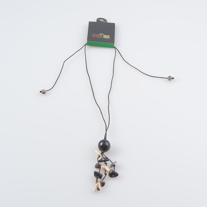 Tagua Kette schwarz weiss 40 cm von Green Age. Das gewachste Baumwollhalsband ist sehr reißfest und kann per Ziehverschluss individuell eingestellt werden.