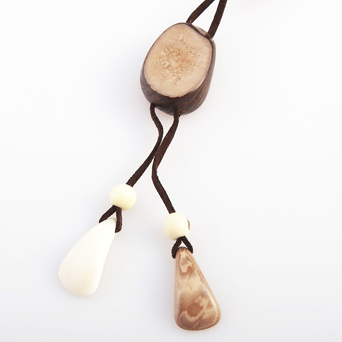 Tagua Kette Kira rot olivegrün. Das gewachste Baumwollhalsband ist sehr reißfest und kann per Ziehverschluss individuell eingestellt werden. max. 45cm lang