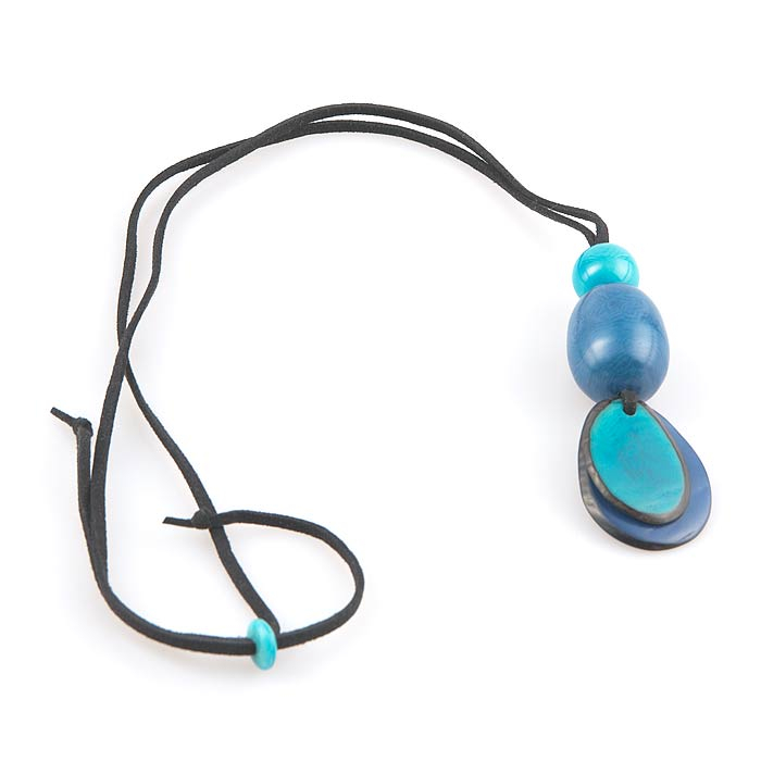 Tagua Kette Ormiga türkis dunkelblau von Green Age, 30 cm lang