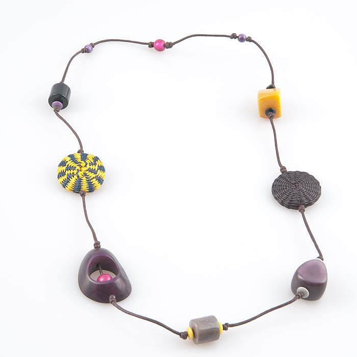 Tagua Kette Tarika purple gelb pink grau von Green Age. Länge 45 cm.