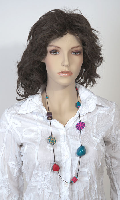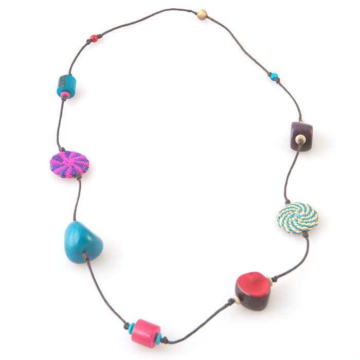 Tagua Kette türkis pink rot von Green Age. Länge 45 cm.