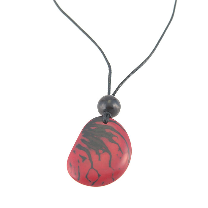 Tagua Kette Kira rot olivegrün. Das gewachste Baumwollhalsband ist sehr reißfest und kann per Ziehverschluss individuell eingestellt werden.