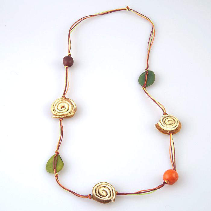 Tagua Kette von Mekhada. Komposition aus Tagua und getrockneten Zitronenschalen. Länge 45 cm.